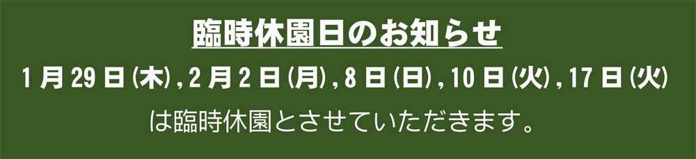 明日2月8日(日)は雪による悪天候につき臨時休園とさせていただきます。