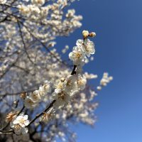 文化財『蛇の鼻御殿』の東側にあるツバキ・山茶花通りには白梅が植えてあります。その白梅が見頃となりました。風の香に白梅の香りが感じられます。