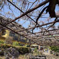 バラ園にある約20メートルの中フジ棚が見頃となりました。