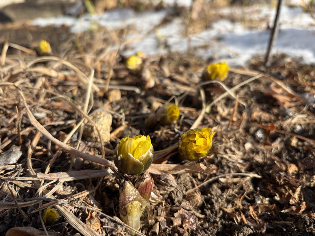 福寿草のつぼみが成長して来ました。