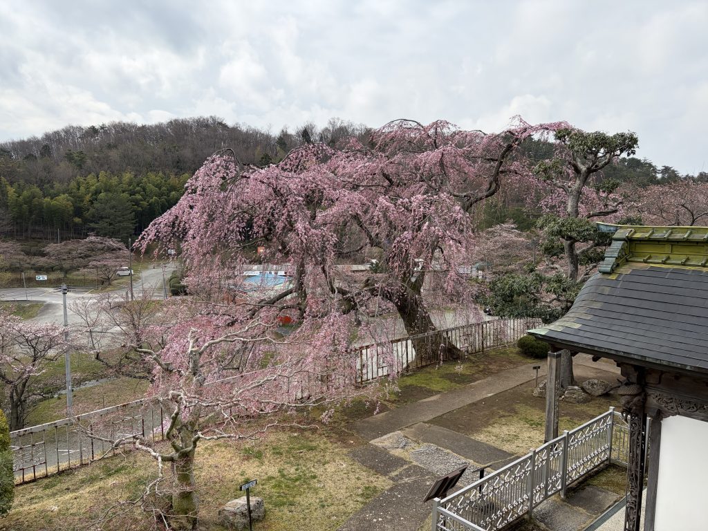 御殿枝垂れ桜が満開です。